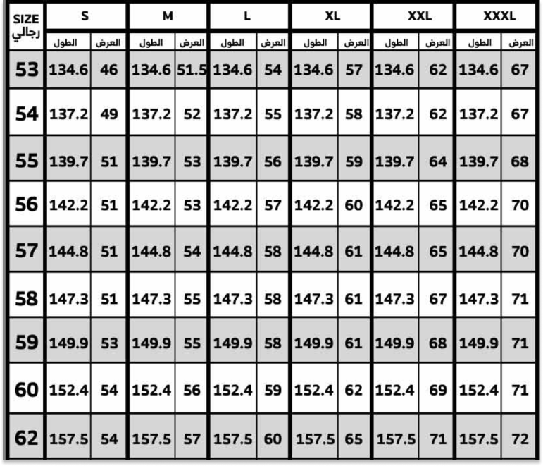 دليل المقاسات